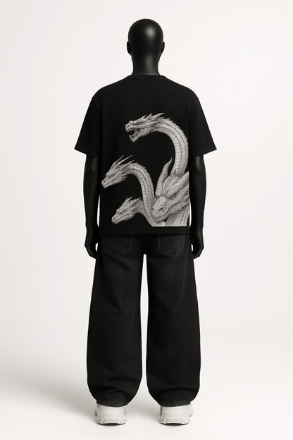Unleash the beast with the Hydra Flame tee from REDX. Featuring a powerful five-headed dragon design dominating the back and a sleek chest emblem with the iconic REDX logo, this black oversized tee blends mythic energy with bold streetwear aesthetics. Crafted from premium-grade cotton for unmatched comfort and durability—this piece is made to command attention.
